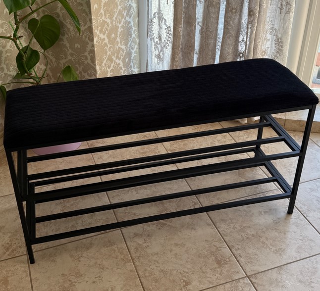 Верхня м’яка частина вже закріплена на каркасі. Для збирання потрібно лише прикрутити 2 бокові рамки та 2 полиці для взуття. У комплекті є все необхідне (гвинти та ключ).