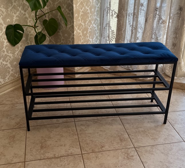 Верхня м’яка частина вже закріплена на каркасі. Для збирання потрібно лише прикрутити 2 бокові рамки та 2 полиці для взуття. У комплекті є все необхідне (гвинти та ключ).