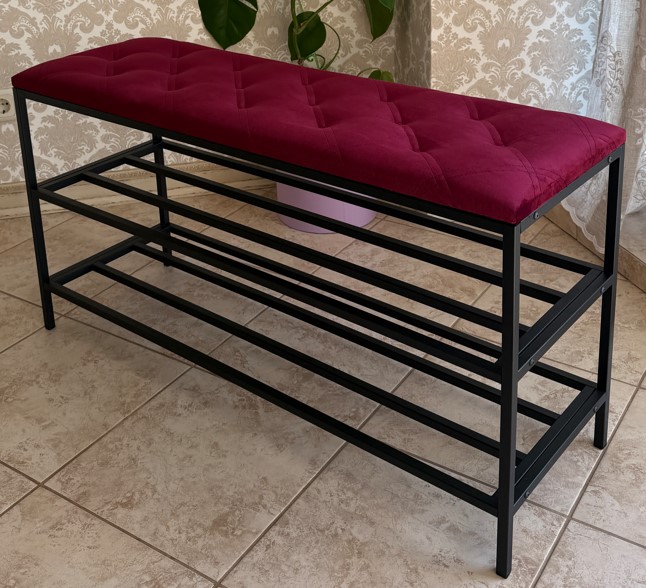 Верхня м’яка частина вже закріплена на каркасі. Для збирання потрібно лише прикрутити 2 бокові рамки та 2 полиці для взуття. У комплекті є все необхідне (гвинти та ключ).