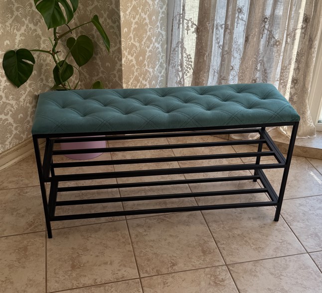 Верхня м’яка частина вже закріплена на каркасі. Для збирання потрібно лише прикрутити 2 бокові рамки та 2 полиці для взуття. У комплекті є все необхідне (гвинти та ключ).